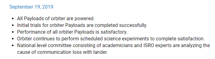 The Chandrayaan-2 orbiter is still in operation, though. On September 19th, ISRO released this statement.