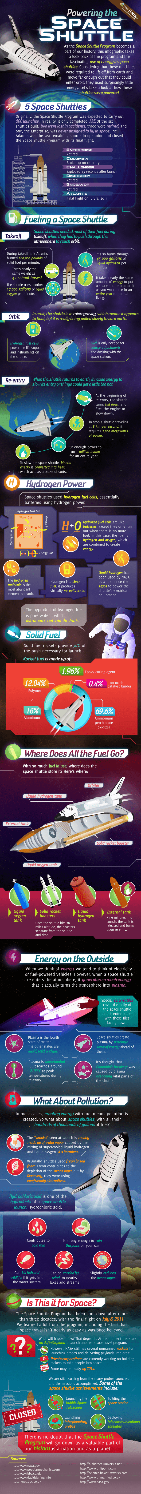 How much energy does it take get the space shuttle launched, into orbit, and back to Earth again? This infographic provides facts, stats and data on the soon-to-be-retired space shuttles.