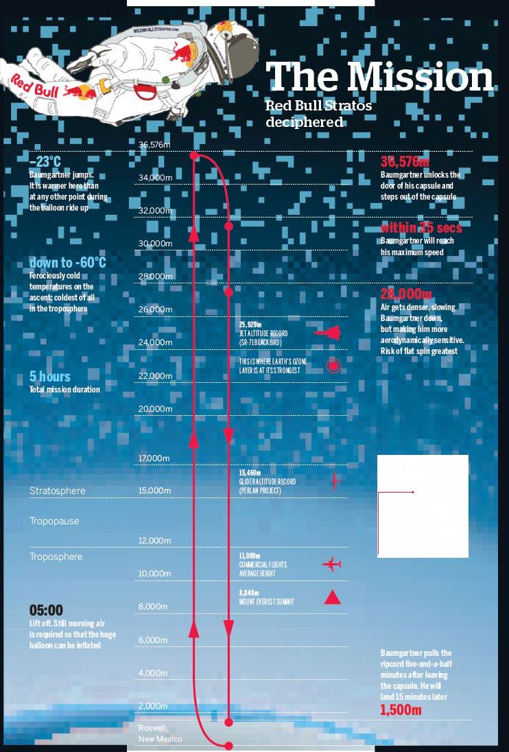 What are all the steps and stages of Felix Baumgartner's record-setting freefall attempt which will take place later this year? This infographic provides a look at what happen during the jump.