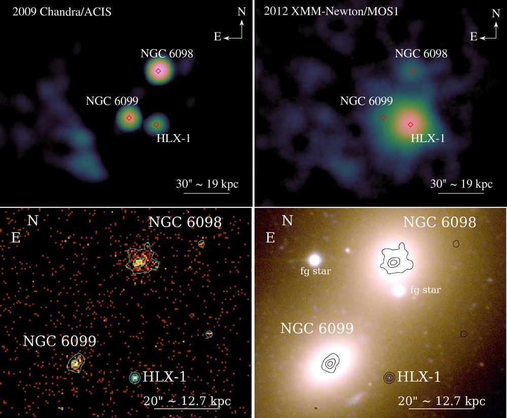 The source is called NGC 6099 HLX-1, and Chandra first detected it in 2009 when it flared brightly in x-rays. Astronomers have been monitoring it with the ESA's XMM-Newton since then and watched as its x-ray emission varied over time. Observations from multiple other telescopes round out the evidence.
