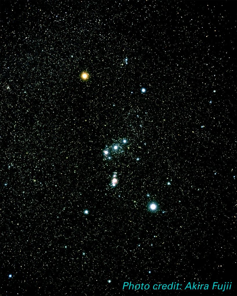 One of the brightest stars in the sky, Betelgeuse is a red supergiant found situated prominently at the upper left of the constellation Orion. It represents the shoulder of the hunter although some translations suggest it refers to 'the armpit of the giant!' It's one of the largest stars visible to the unaided eye with a radius about 1,000 times the Sun. At a distance of 642 light years away, its brightness in our sky tells us it must be giving out about 100,000 times more light than the Sun. Over the last five years it's been getting special attention due to its unexpected dimming.