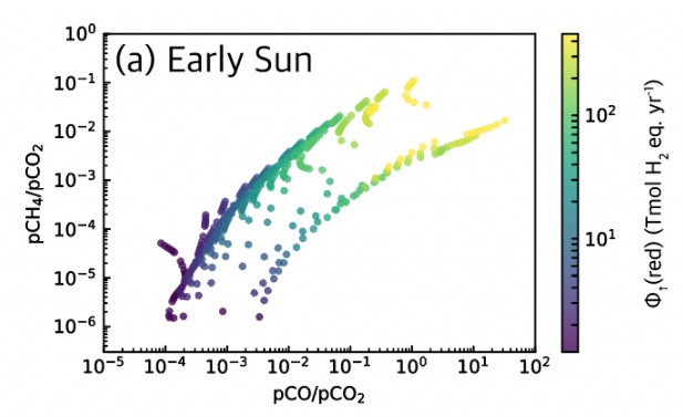 In their simulated atmospheres, CO runaway played an important role. "... the atmospheric chemistry is clearly divided into the groups before and after the occurrence of CO runaway," they explain.