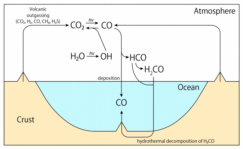 The study is particularly concerned with CO. "We focused on the conditions for the formation of a CO-rich atmosphere, which would be favourable for the origin of life," the authors write.