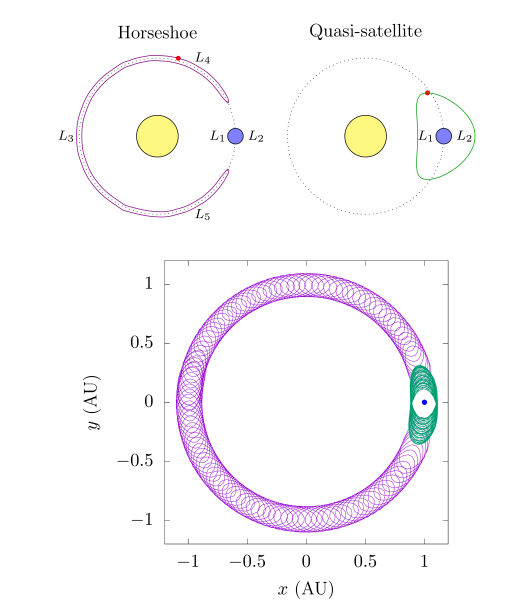 There are three main types of co-orbitals: Trojan/tadpole (T), horseshoe (HS), and retrograde satellite/quasi-satellite (QS.) The two types that are important in this research are the latter two: HS and QS.