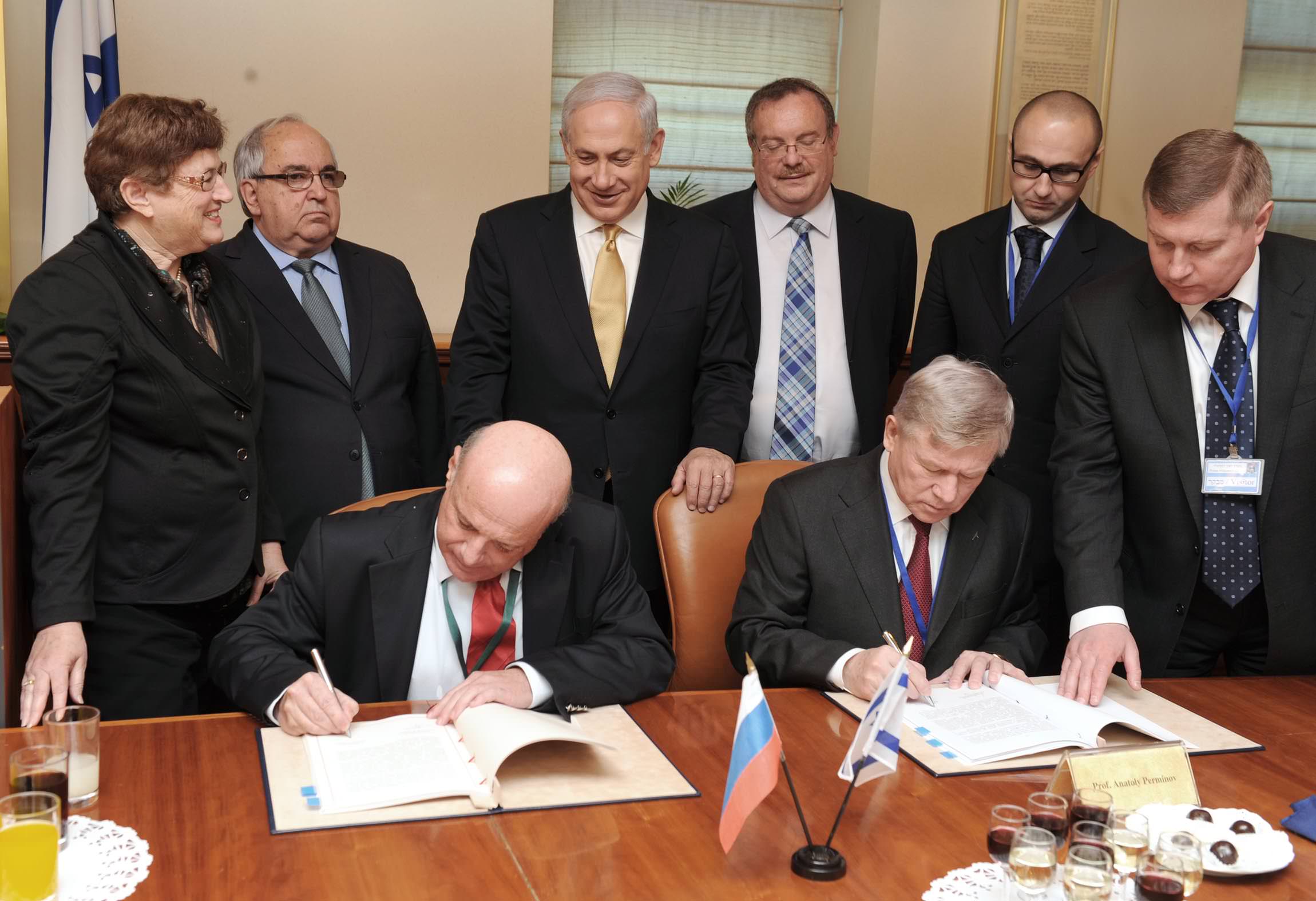 Those present at the signing included Kaplan, Anatoly Perminov, head of Roscosmos, Israeli Prime Minister Benjamin Netanyahu and Minister of Science and Technology Professor Daniel Hershkowitz, Russian Ambassador to Israel, Peter Stganye, and experts from both countries in space.