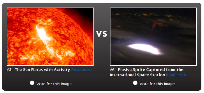 NASA's Earth Observatory website has decided to join in on the bracketology fever that overtakes many US citizens during the month of March ... but with science and not basketball. Instead of March Madness, it's EARTH MADNESS! From March 4 through April 5, Earth Observatory fans can vote for their favorite images of the year. There are thirty-two images vying for the title, but only one can be the winner. This will be a head-to-head competition, whittling the total from 32 to 16 to 8 to 4 to 2 in a tournament of remote sensing science. The competition will be stiff in the four brackets — Earth at Night, Events, Data, and True-Color — so it is up to you to separate the winners from the losers. Check back each week to vote in the next round and help choose a winner.