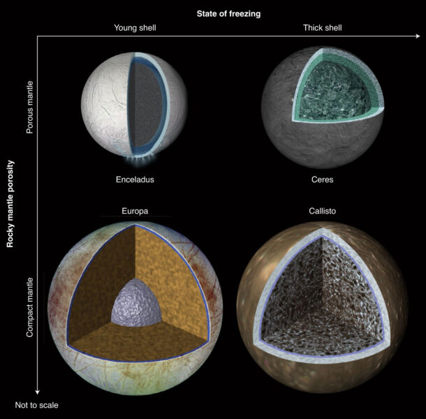 "Most of Ceres' subsurface ocean is frozen today," Sizemore said in an email, "with relatively small amounts of remnant liquid. Retaining any liquid is challenging, given that tidal heating doesn't occur. We think that clathrate hydrates (water ice with gases such as methane trapped in the crystal lattice) make Ceres' crust very insulating. Clathrates effectively act like a blanket that allows the dwarf planet to hang on its interior heat."