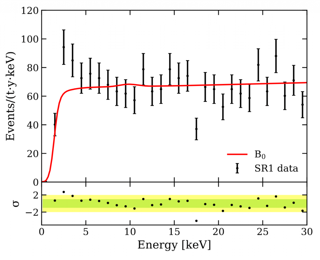 You can see this in a figure from their paper. The red line shows the expected background signal, while the black bars are the XENON1T data. It mostly agrees, except at the lower energy end. Doing the math, it is a 3.5 sigma excess. It's not high enough to be conclusive, but it is more than enough to be interesting.