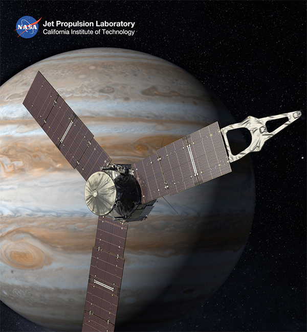 Artist's concept of the Juno spacecraft at Jupiter. Courtesy NASA.