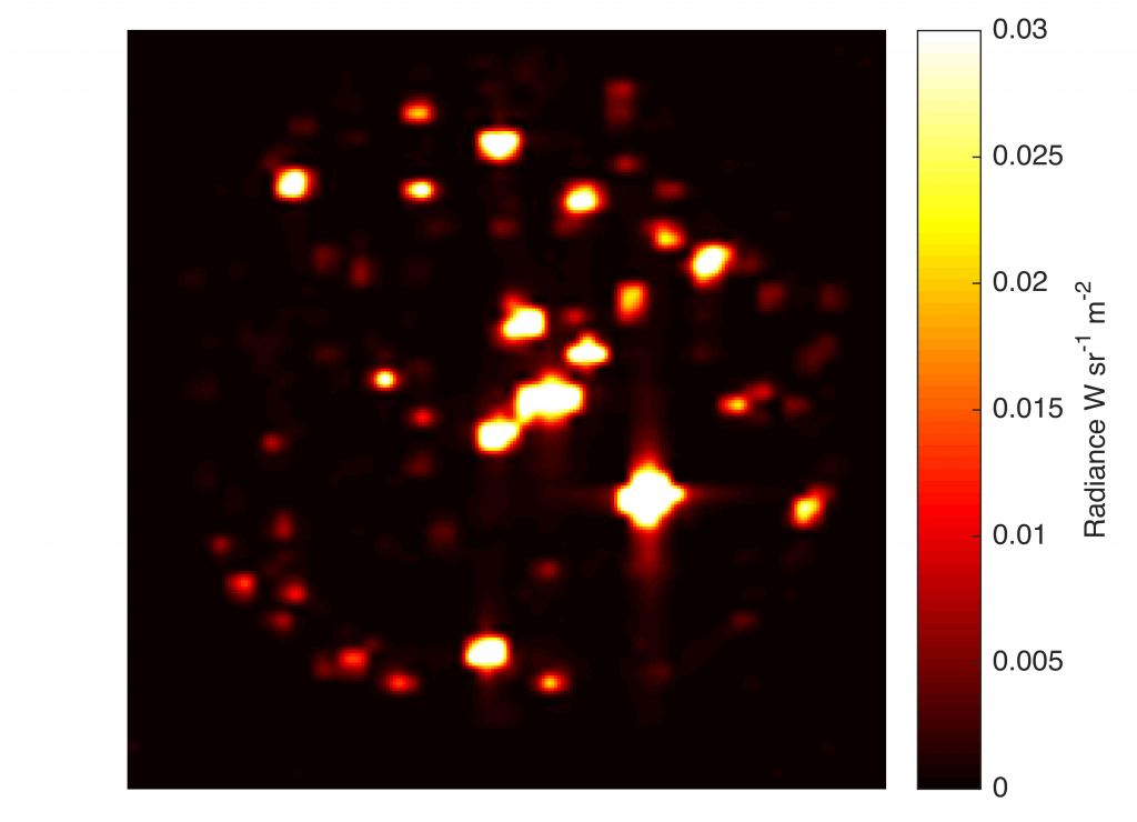 This was a rare opportunity, since the SRU was not designed for surface imaging. The crew also used the occasion to test out the JIRAM instrument, which senses heat at long wavelengths. Designed to detect hotspots in Jupiter's atmosphere between day and night, the crew found that the instrument was also useful for generating an image of the hotspots on Io's surface (shown below).