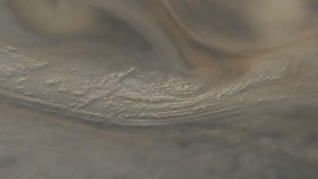 On May 23, 2022, the Juno spacecraft made another close pass of Jupiter, with its suite of scientific instruments collecting data and its JunoCam visible light camera snapping photos all the while. This close pass, called a perijove, is the 42nd time the spacecraft has swung past Jupiter since Juno's arrival in 2016.