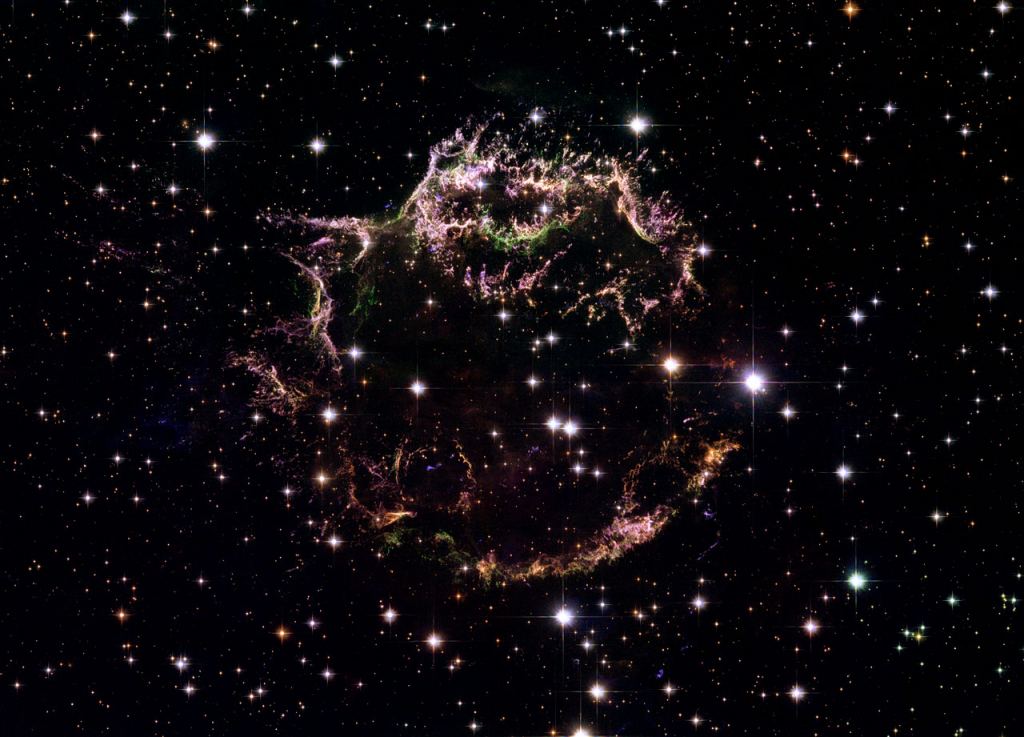 The Hubble Space Telescope, the Spitzer Space Telescope, and the Chandra X-Ray Observatory have all studied Cas A. In fact, Spitzer's first light image back in 1999 was of Cas A.