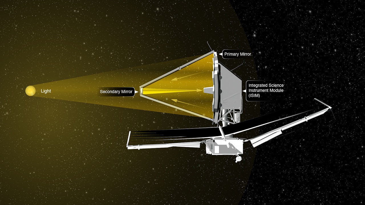 Lead image caption: *Webb’s primary mirror intercepts red and infrared light traveling through space and reflects it onto a smaller secondary mirror. The secondary mirror then directs the light into the scientific instruments where it is recorded.Credits: IMAGE: STScI, Andi Jame* s (STScI)