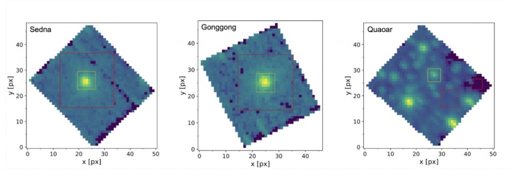 "Previous work has shown that they may be able to. While all being roughly similar sizes, their orbits are distinct. Sedna is an inner Oort Cloud object with perihelion of 76 AU and aphelion of nearly 1,000 AU, Gonggong is in a very elliptical orbit also, with perihelion of 33 AU and aphelion ~100 AU, and Quaoar is in a relatively circular orbit near 43 AU. These orbits place the bodies in different temperature regimes and different irradiation environments (Sedna, for instance, spends most of its time outside the Sun's heliosphere). We wanted to investigate how those different orbits could affect the surfaces. There are also other interesting ices and complex organics on the surfaces."