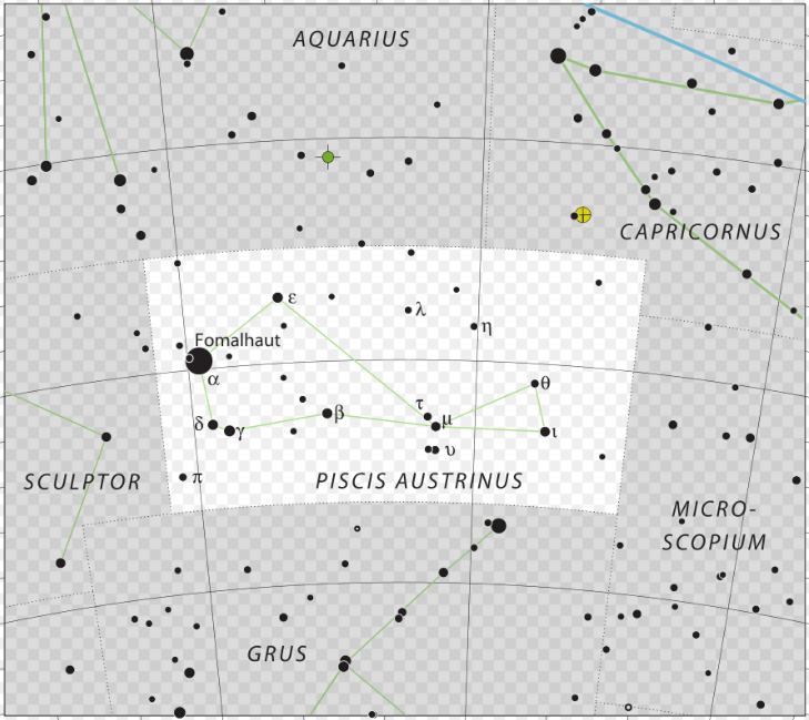 Like all stars this bright, Fomalhaut has been known since antiquity. Its name comes from ancient Arabic and means "mouth of the fish." That makes sense, since it's in the Piscis Austrinus (Southern Fish) constellation. Its designation is HR 8728, but in 2016 the IAU officially named it Fomalhaut.