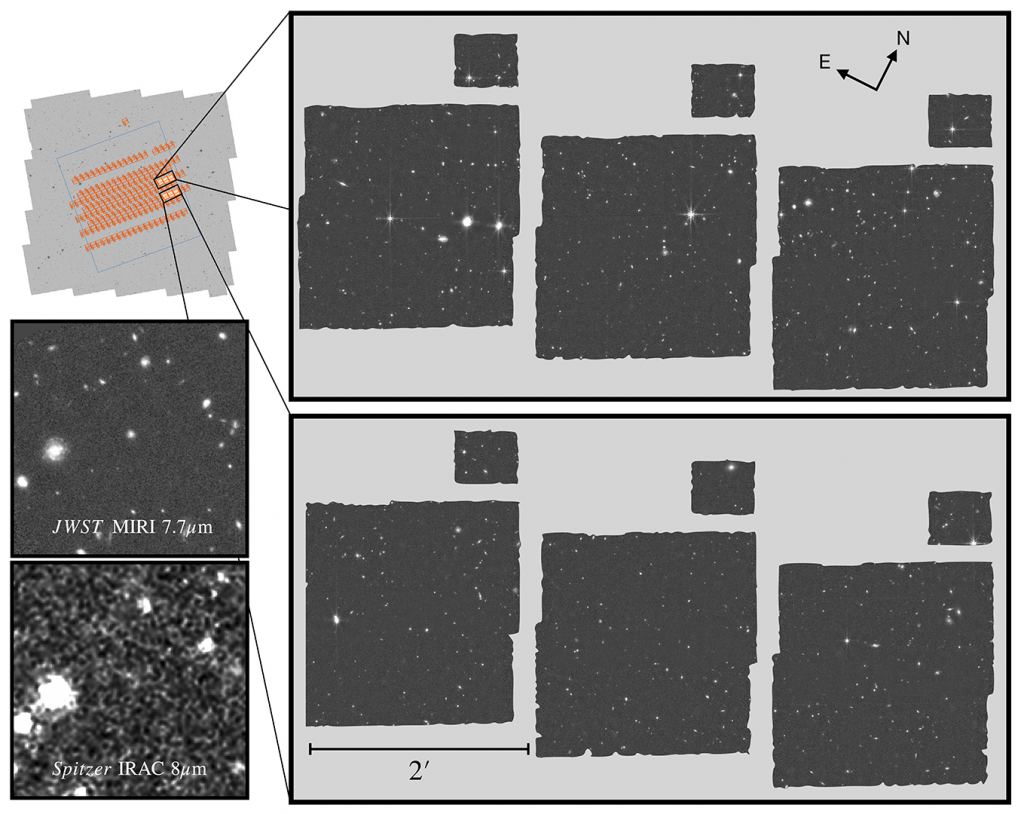 The image above is a mosaic of images taken in early January by JWST's Near-Infrared Camera (NIRCam) and Mid-Infrared Instrument (MIRI). The survey will It will gather additional data in another 77 pointings of the telescope in April and May and then a remaining 69 in December and January 2024.