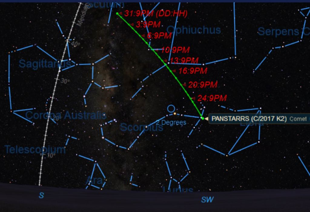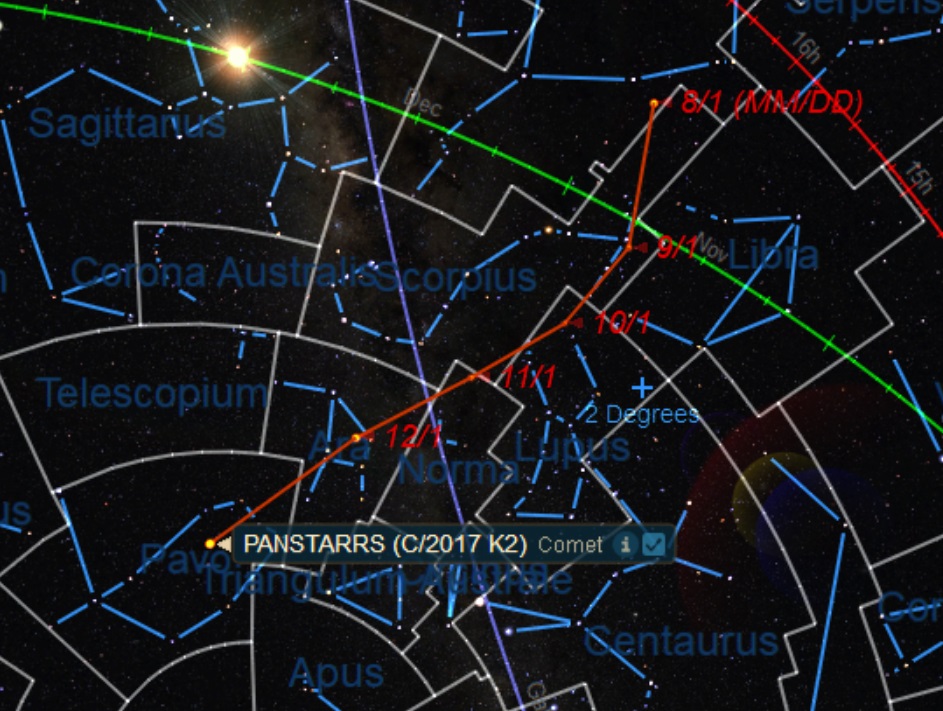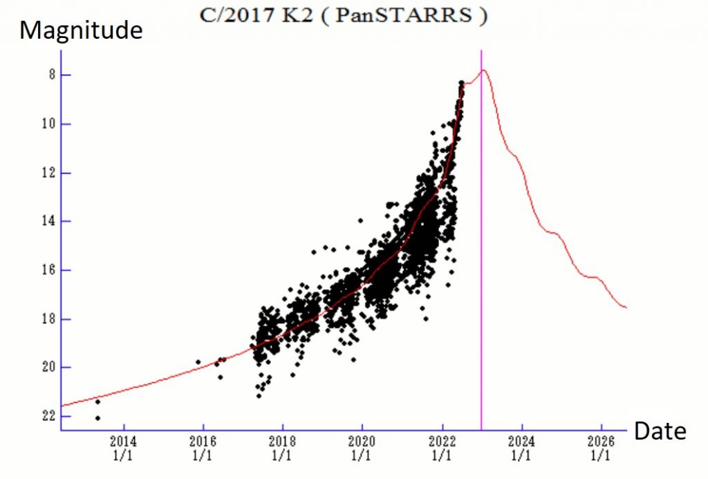 Here's the month-by-month dates with destiny for Comet K2 PanSTARRS, for the remainder of 2022: