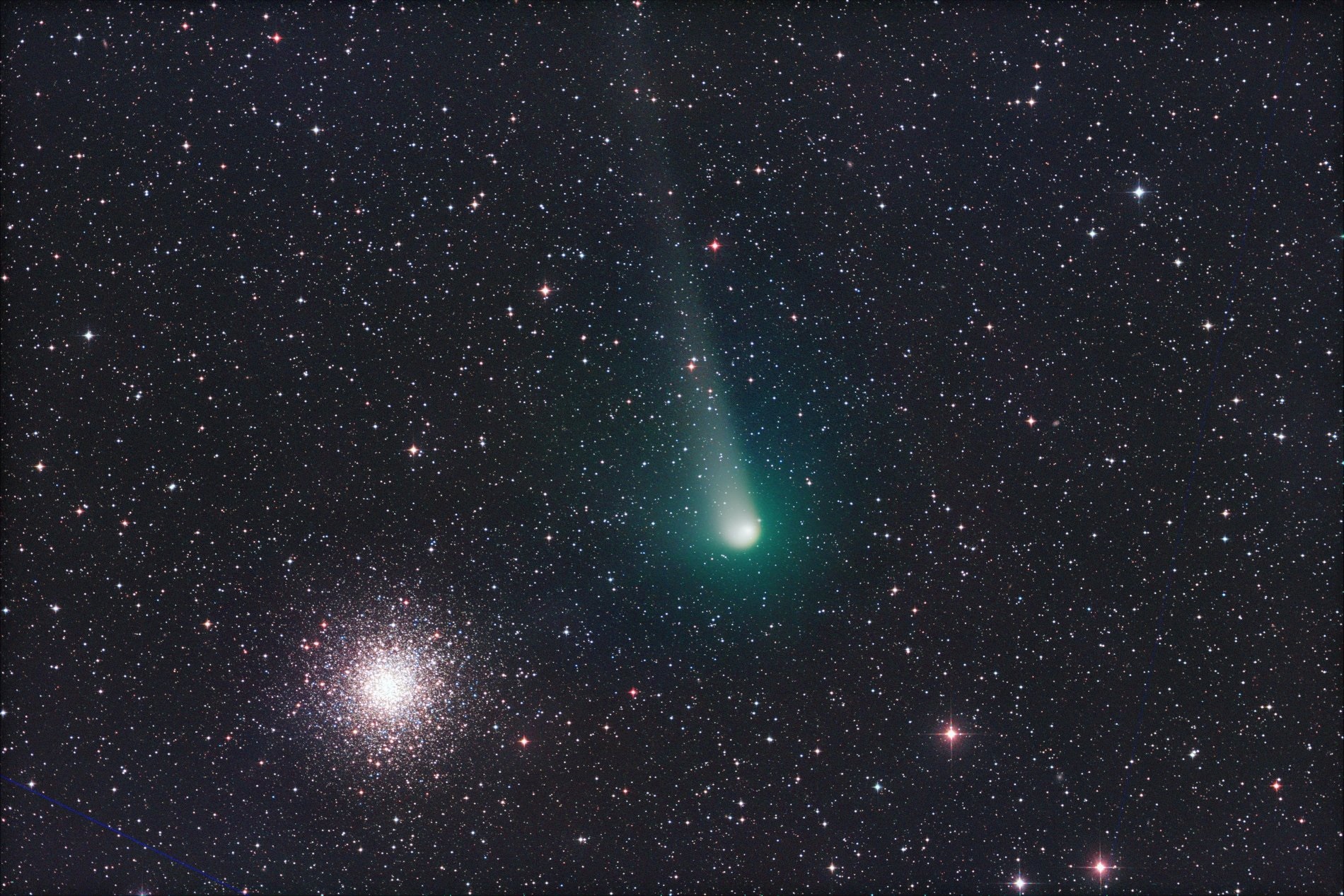 *Lead image credit: Comet K2 PanSTARRS passes near the globular cluster Messier 10 in early July 2022. Image credit and copyright: Michael Jager*