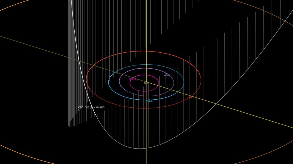 The orbit of the comet is likely dynamically new, which explains its tempestuous behavior while it's still far from the Sun. K2 PanSTARRS will reach perihelion 1.8 AU (just beyond the orbit of Mars) later this year on December 19th. This passage will also shorten its orbit down to 'only' 18,000 years, with an outbound aphelion 1400 AU distant.