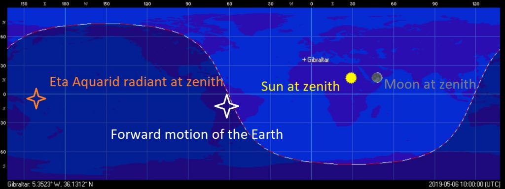 The exact peak for the 2019 Eta Aquarids is expected to arrive on May 6that 14:00 Universal Time (UT)/10:00 AM EDT, favoring the southwestern Pacific region.