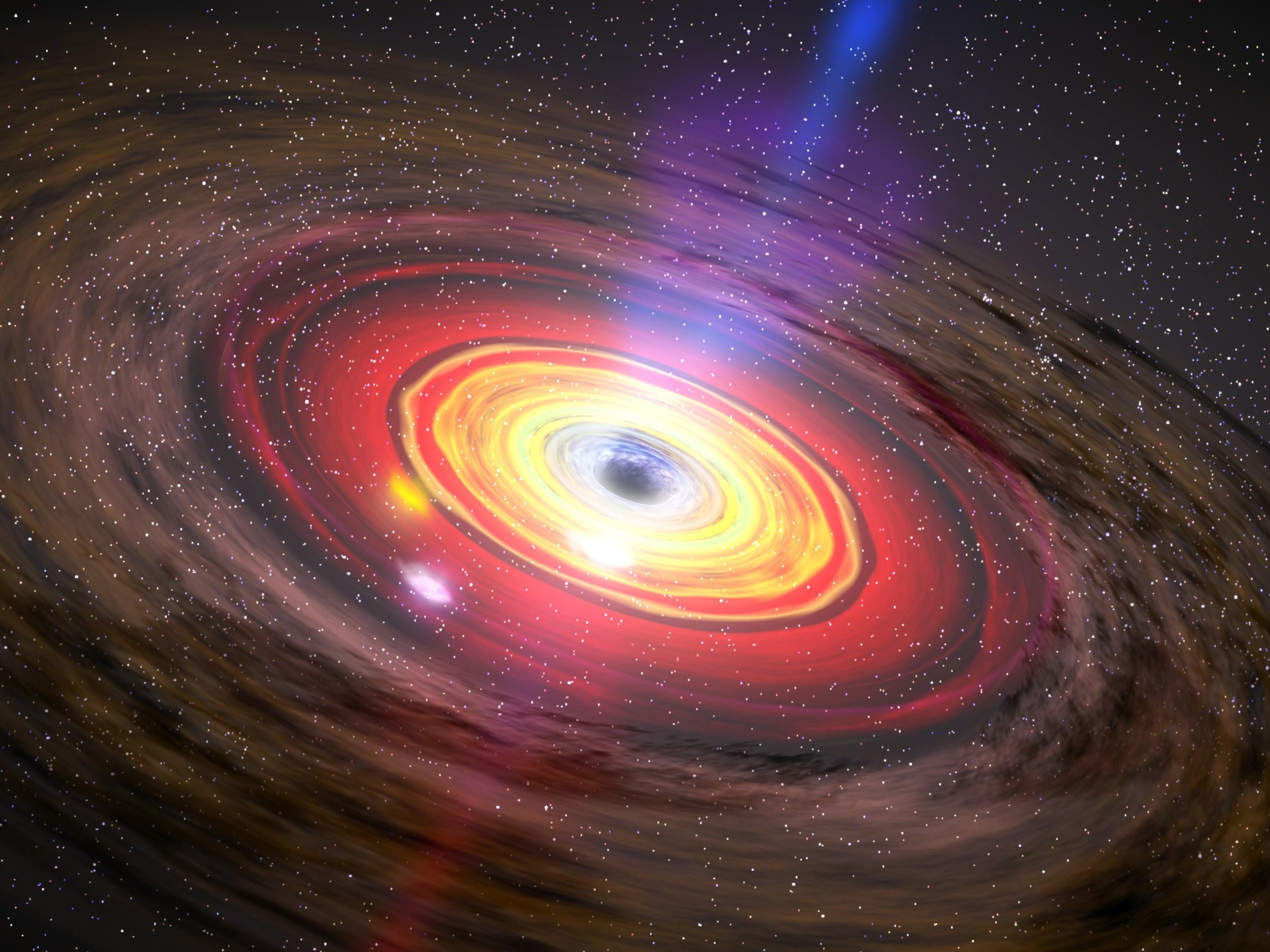 Measuring the time-delay between the two emitted points of light tells the size of the gap between the accretion disk and the gas cloud. And measuring the width of the emitted light from the gas cloud tells the velocity of the gas moving near the black hole (due to an effect known as Doppler broadening). Together, these two measurements allow astronomers to determine the mass of the supermassive black hole.