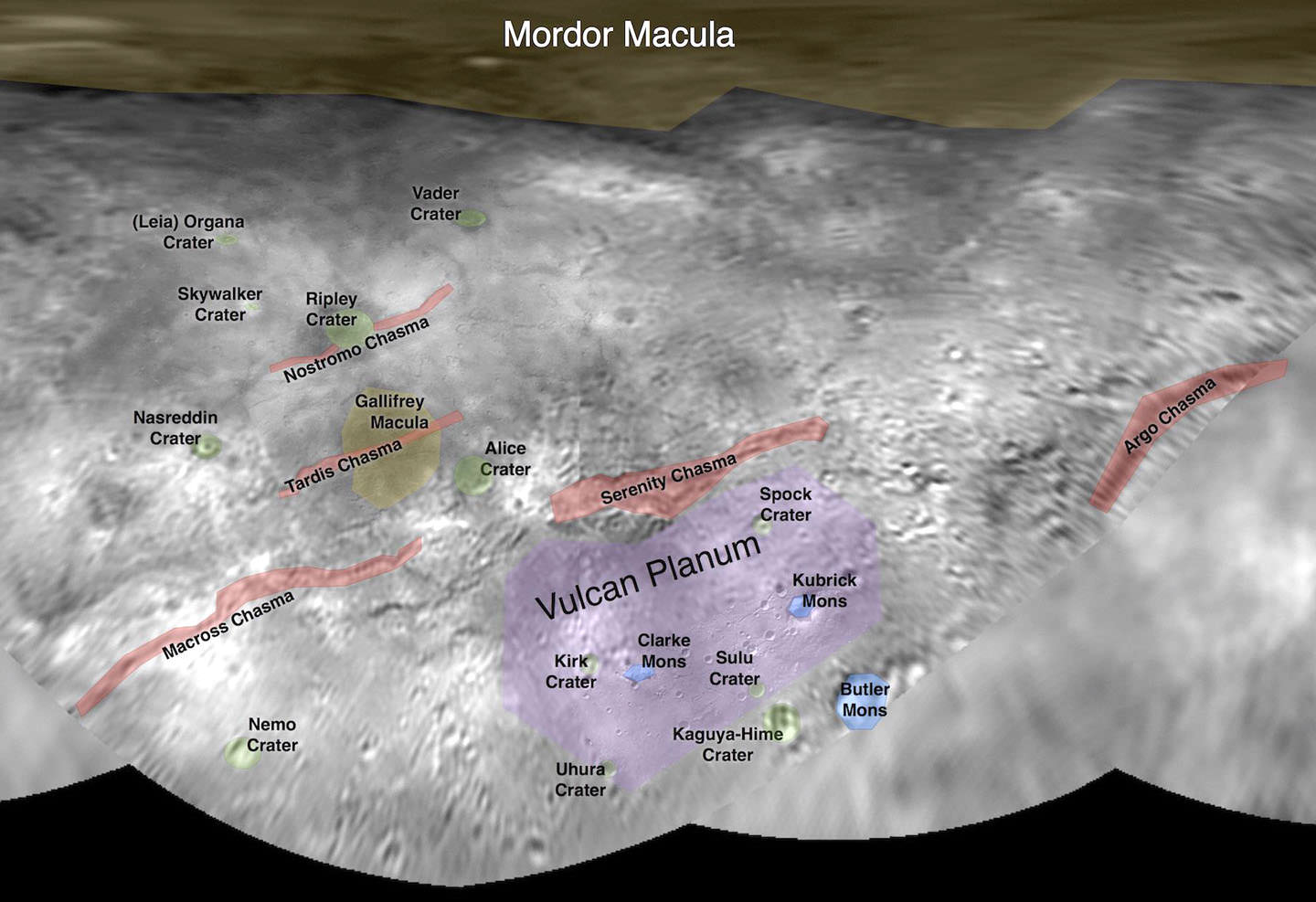 A big smile. That was my reaction to seeing the names of Uhura, Spock, Kirk and Sulu on the latest map of Pluto's jumbo moon Charon. The monikers are still only informal, but new maps of Charon and Pluto submitted to the