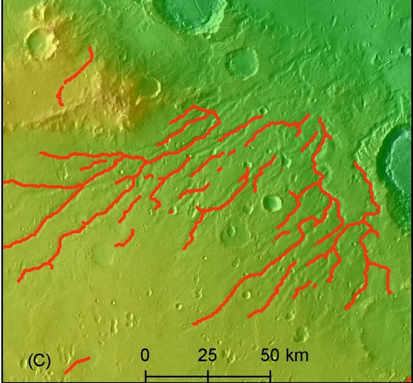 The networks were discovered in 1971 by the Mariner 9 spacecraft, but scientists have debated whether they were created by