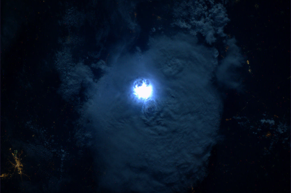 Here's an amazing shot of a flash of lightning within storm clouds over west Africa, captured from orbit by ESA astronaut