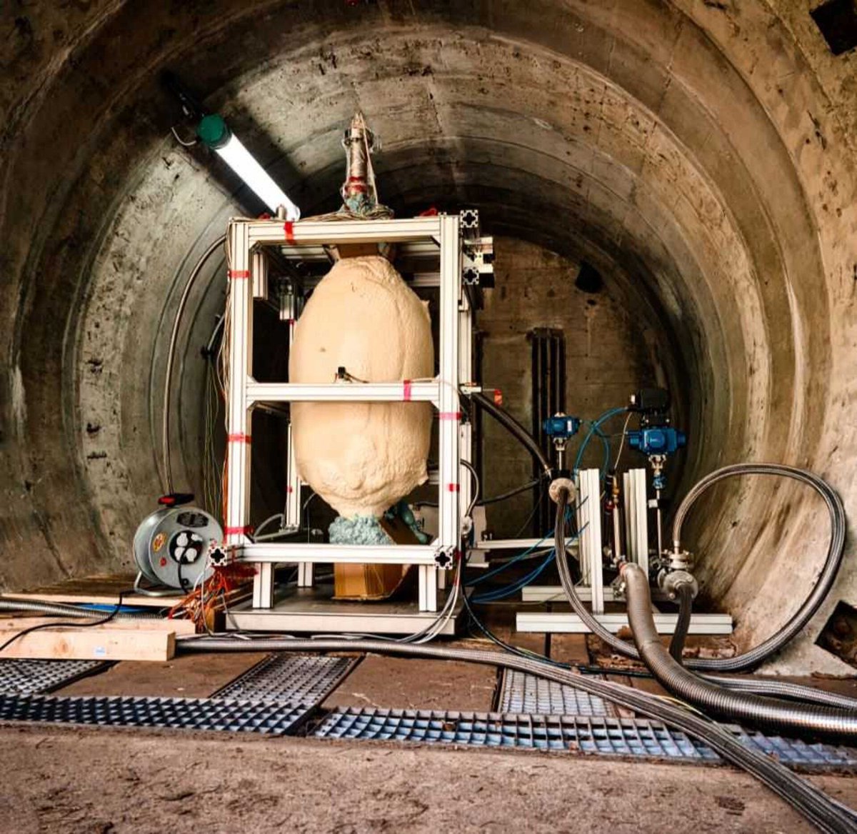 Prototype CFRP tank in a pressure chamber