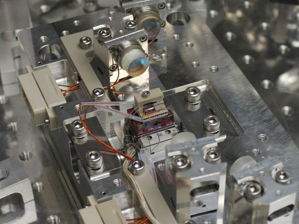 This squeezed state of light is done through an optical parametric oscillator. It's basically a set of mirrors around a special kind of crystal. When the light passes through the crystal, it minimizes the fluctuations in phase. The fluctuations in amplitude get larger, but it's the phase that matters most to theLIGOdetectors.