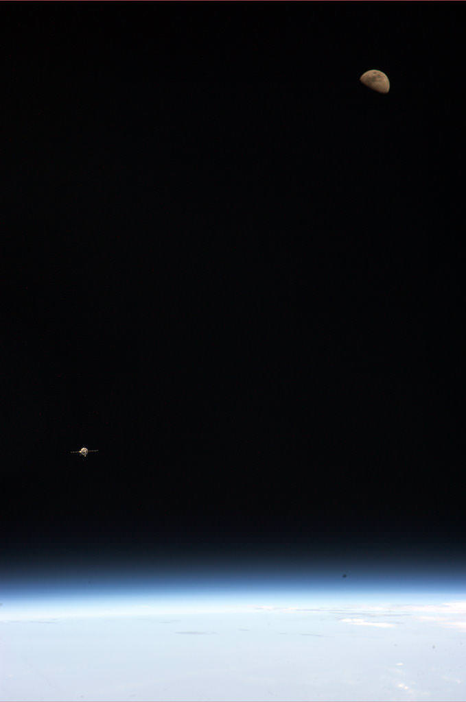 Earth, Moon and Soyuz. Credit: NASA/Kevin Ford.