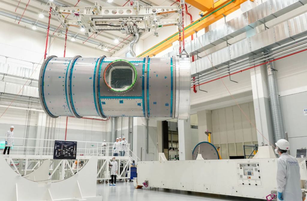 The first welding of the ring and cylinder segments for HALO occurred at Thales Alenia Space in 2021, marking the first major milestone for assembly of the module's primary structure.