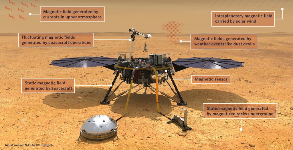 "One of the big unknowns from previous satellite missions was what the magnetization looked like over small areas. By placing the first magnetic sensor at the surface, we have gained valuable new clues about the interior structure and upper atmosphere of Mars that will help us understand how it – and other planets like it – formed." "The ground-level data give us a much more sensitive picture of magnetization over smaller areas, and where it’s coming from. In addition to showing that the magnetic field at the landing site was ten times stronger than the satellites anticipated, the data implied it was coming from nearby sources."
