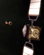 At ejection, the spacecraft simply lets go of the lander. Beagle 2 will be spun to keep it stable and pushed away with the gentlest of forces; nothing dramatic like a 'blast off' at launch. Then, and only then, can engineers send the necessary commands for Mars Express to fire its engine and alter its course to avoid destruction on the surface of Mars.