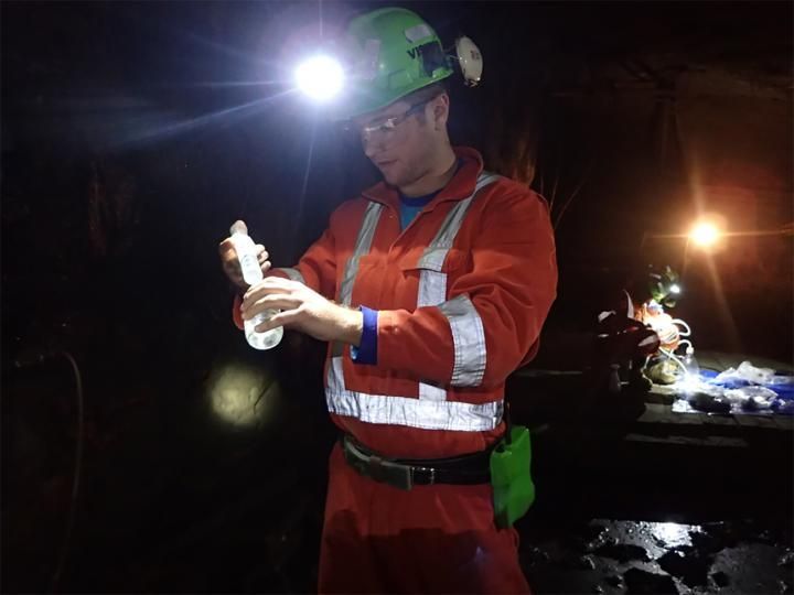 Jesse Tarnas, the lead author on the paper, collecting samples in a mine shaft that could prove similar in environment to the subsurface of Mars.