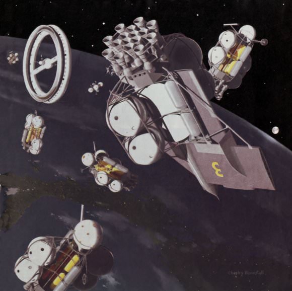 Ships being assembled in orbit. Credit: Collier's[/caption]
