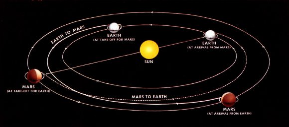 The planned trajectories to and from Mars. Credit: Collier's[/caption]