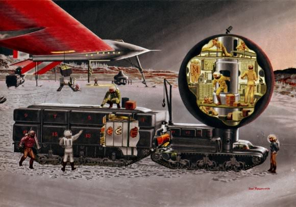 Once again, I think it's important to note that Von Braun didn't truly understand how awful the surface of Mars really is. The almost non-existent atmosphere and extreme cold would require much more sophisticated gear than he had planned for. But still, you've got to admire his ambition.