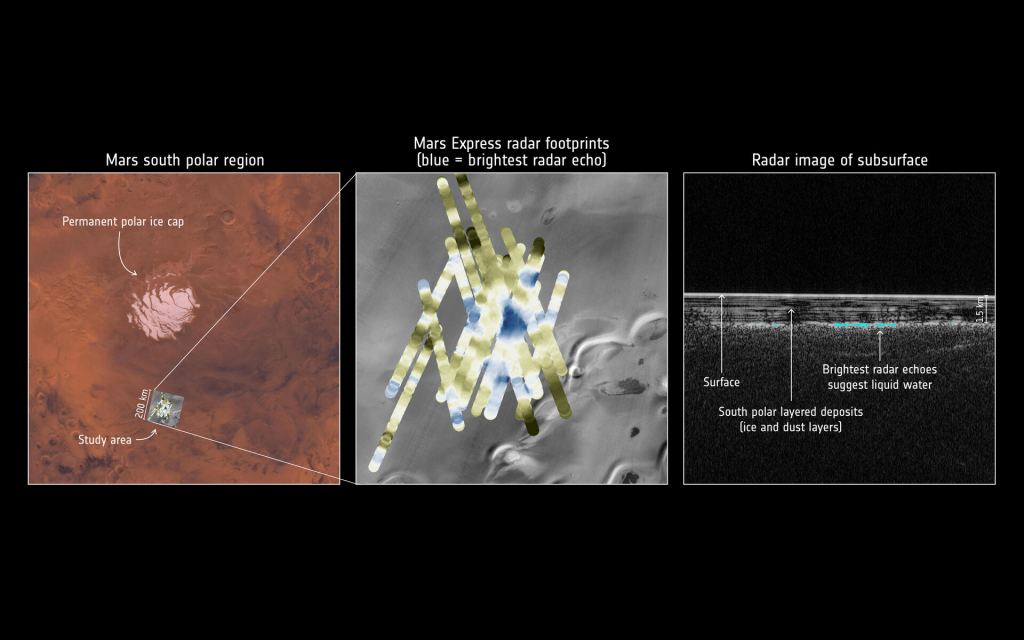 When cooled to cryogenic temperatures, these elements become the two ingredients of conventional hydrogen fuel - i.e., liquid hydrogen and liquid oxygen (LOX). Hence, the locations of water ice deposits on Mars are a major concern for mission planners and the selection of future landing sites. Around the poles, there are abundant supplies of water concentrated in the ice caps, and layers of subsurface permafrost have been observed at all latitudes.