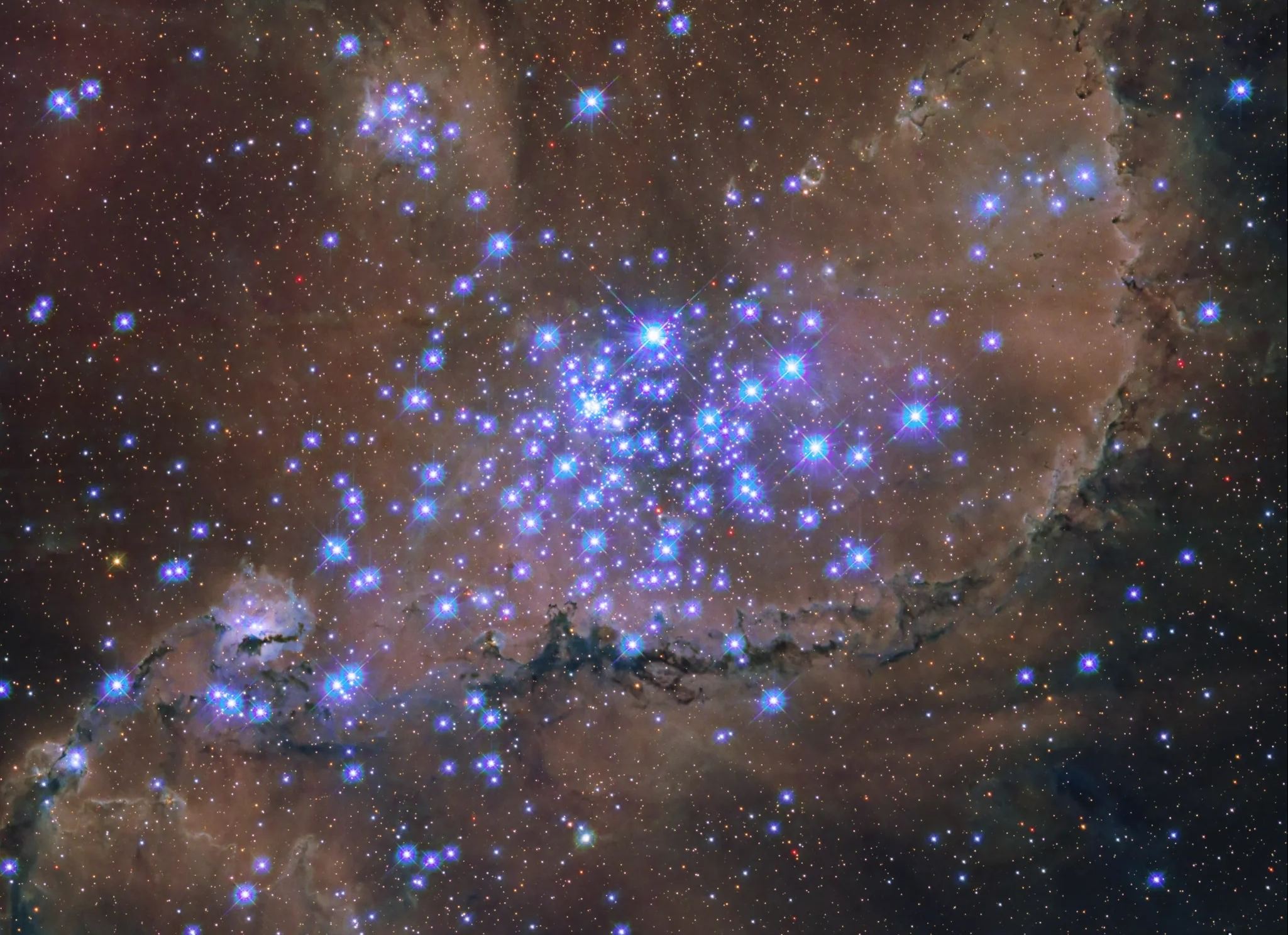 Another interesting feature of the SMC is the spectacular star cluster known as NGC 346, located near the center of the brightest star-forming region in the SMC, the hydrogen-rich nebula designated N66. Yesterday, NASA released a new image of this star cluster acquired by the venerable *Hubble Space Telescope*, which provides a unique and breathtaking view of this star cluster. These images were made possible thanks to Hubble's sharp resolution and unique ability to make sensitive ultraviolet observations.