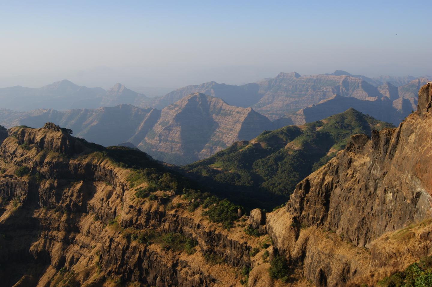 The Deccan Traps is a region in India known as a large igneous province. It's one of the largest volcanic features on Earth. The Traps are multiple layers of basaltic lava, and all together they're more than 2 km (1.2 miles) thick. The Deccan Traps cover an area of 500,000 km. sq. (200,000 mi. sq.), though at one time they covered as much as 1.5 million sq. km. (600,000 mi. sq.) The volume of the lava is 1 million cubic km (200,000 cubic miles.)