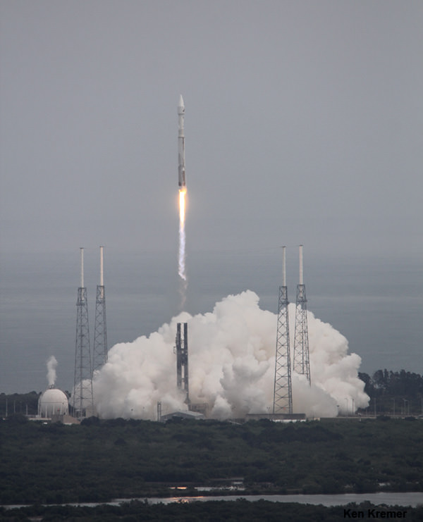 NASA's Mars bound MAVEN spacecraft launches atop Atlas V booster at 1:28 p.m. EST from Space Launch Complex 41 at Cape Canaveral Air Force Station on Nov. 18, 2013. Image taken from the roof of the Vehicle Assembly Building (VAB) at NASA's Kennedy Space Center. Credit: Ken Kremer/kenkremer.com [/caption]