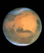 Since it arrived at Mars in 1997, the Mars Global Surveyor has been searching the surface of the Red Planet for carbonate minerals. Large quantities of this substance would be evidence that the planet was once warm and wet, with large oceans and seas on the surface. Surveyor has found trace quantities of the mineral spread evenly in the dust of the planet, but no deposits, indicating that the planet was probably always icy and cold.