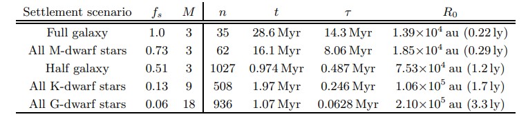 The authors say that the 2 Myr settlement scenario can safely be rejected. "However, this scenario, as well as full galaxy settlement, can be excluded based on our assumption that the solar system has not been settled." They also say that the overall lack of evidence for any other civilizations supports their low-mass star hypothesis. "But the lack of extraterrestrial settlement of the solar system remains consistent with expansion that is limited to half the galaxy, M-dwarf stars, or K-dwarf stars," they write.