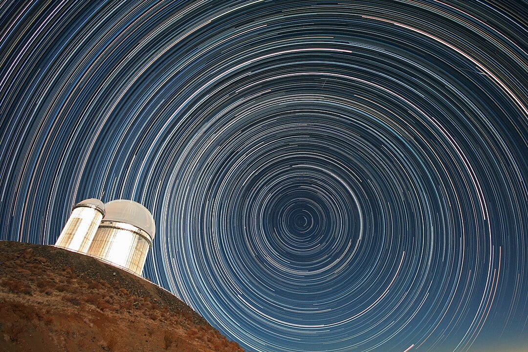 Star trails over the European Southern Observatory can be seen here revealing the direction that the Earth's axis of rotation points (Credit : ESO/A.Santerne)