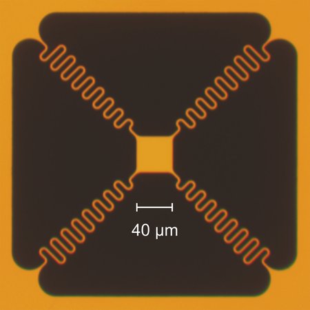 But it is a start, and the test rig introduced some interesting engineering challenges. The square is only 50 nm thick and made of silicon nitride. The springs are made of the same material, and the overall setup "looks like a microscopic trampoline," according to the press release.