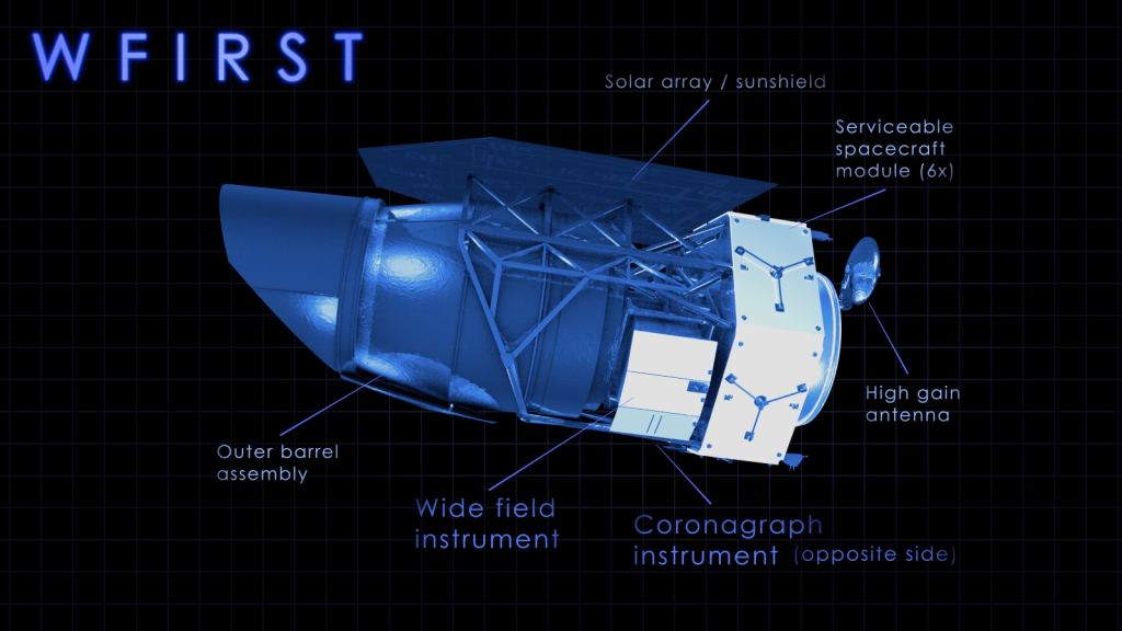 And so voilĂ : WFIRST, short for Wide-Field InfraRed Survey Telescope. The name itself is a little bit of a cosmology pun, because the primary goal of the mission is to investigate the nature of dark energy, the mysterious accelerating expansion of the univeres.