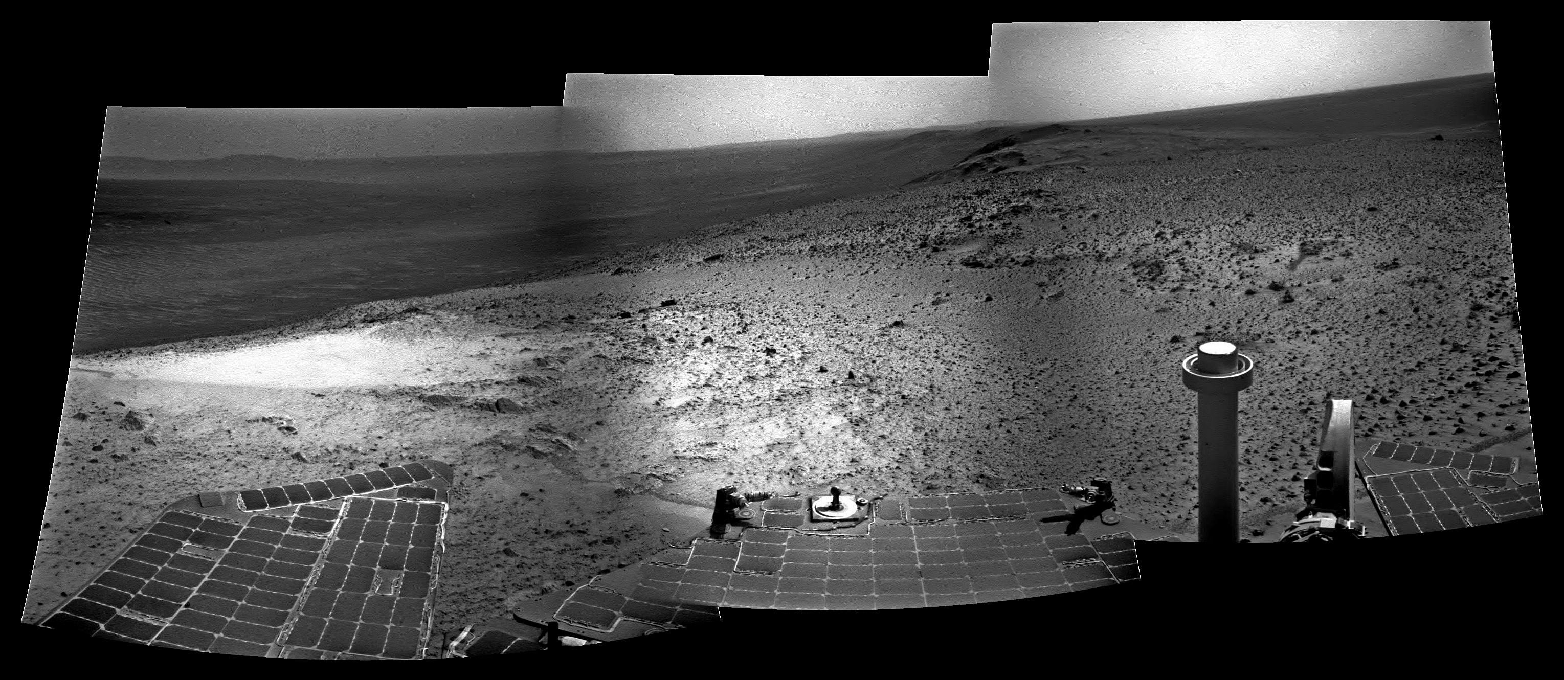 But Opportunity's treks on Mars continue. The rover is now atop the Endeavour Crater's rim at a spot nicknamed "Cape Tribulation", named after one of the locations the explorer James Cook visited with HMS Endeavour during his New Zealand and Australia mission between 1769 and 1771.