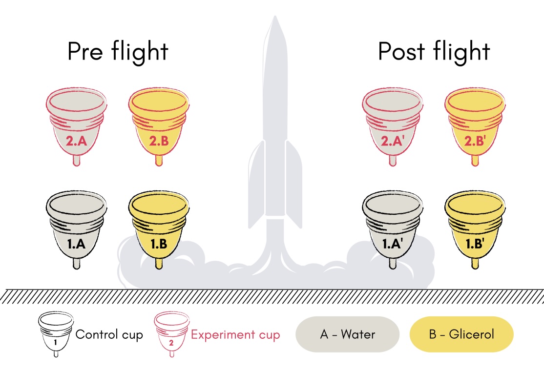 The AstroCup team, led by L ́ıgia F. Coelho from Cornell University, launched four commercially available menstrual cups aboard the Baltasar rocket during a European competition in October 2022 with two cups flying into space while two remained on the ground as controls. The rocket reached over 3 kilometres altitude during a 9 minute flight that subjected the cups to forces 16 times greater than Earth's gravity. Before and after the flight, researchers conducted rigorous testing using water and glycerol to evaluate the cups' structural integrity and leak proof performance.