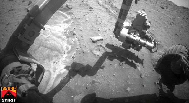 Spirit became embedded in soft soil at a site called "Troy" five months ago, more than five years into a mission on Mars that was originally scheduled to last for three months. The rover team suspended further driving attempts with Spirit while evaluating possibilities from tests performed at JPL simulating the Troy situation.